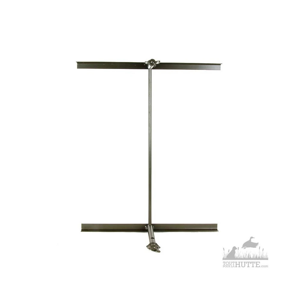 Ce cadre permet d’installer n’importe quel mécanisme à pigeon à la cime d’un arbre. Il est nécessaire de passer différent cordages, deux cables permettent de guider le cadre et de le maintenir droit alors qu’un troisième cable, central, permet de monter ou descendre l’appareil.