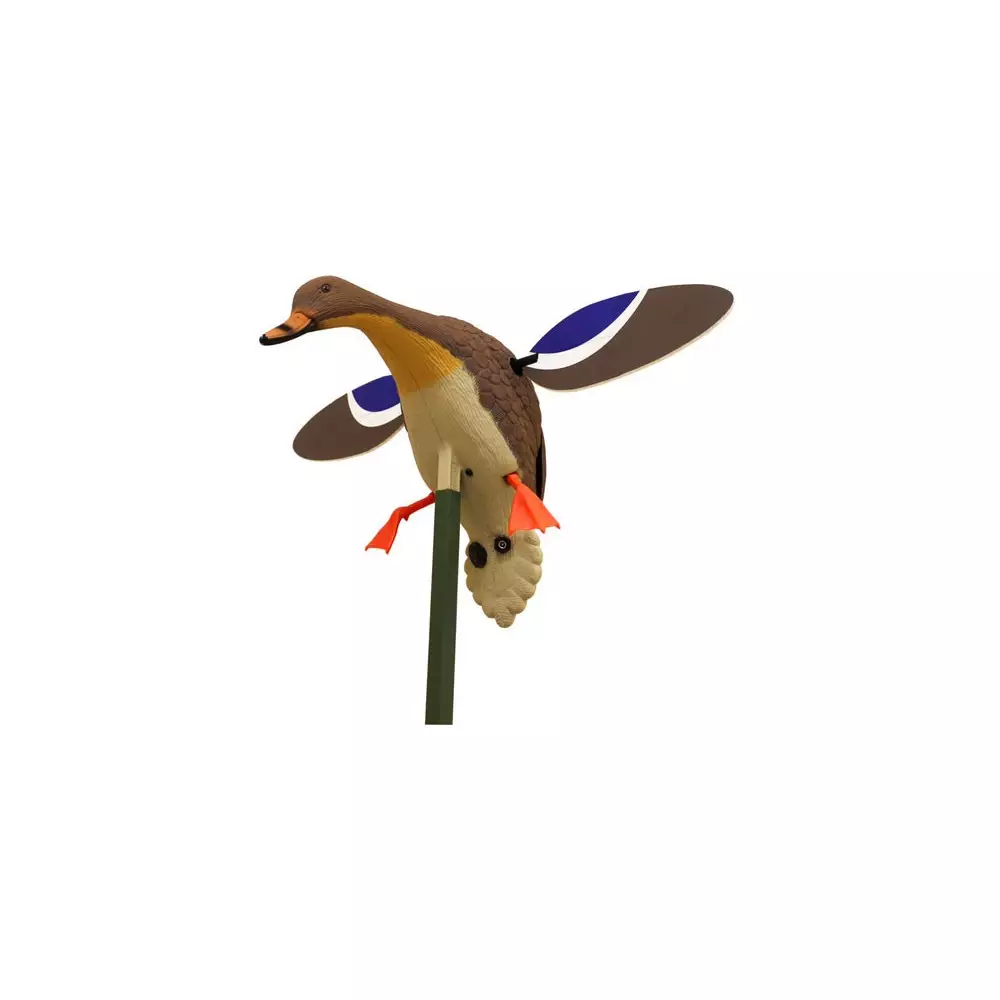 Le Baby Mojo a été conçu pour permettre aux chasseurs de tout horizons de bénéficier de l’incroyable effet d’attraction des formes à ailes tournantes motorisées. Embarqué dans une blette de femelle canard colvert de taille moyenne, le mécanisme, silencieux, fonctionne à l’aide d’une batterie de 6 volt fournie, bien évidemment accompagnée de son chargeur. Le Baby Mojo est livré avec un piquet démontable en 3 parties. Les ailes sont fabriquées en plastique, légères, elles offrent un mouvement rapide et fluide sans consommer fortement sur la batterie.