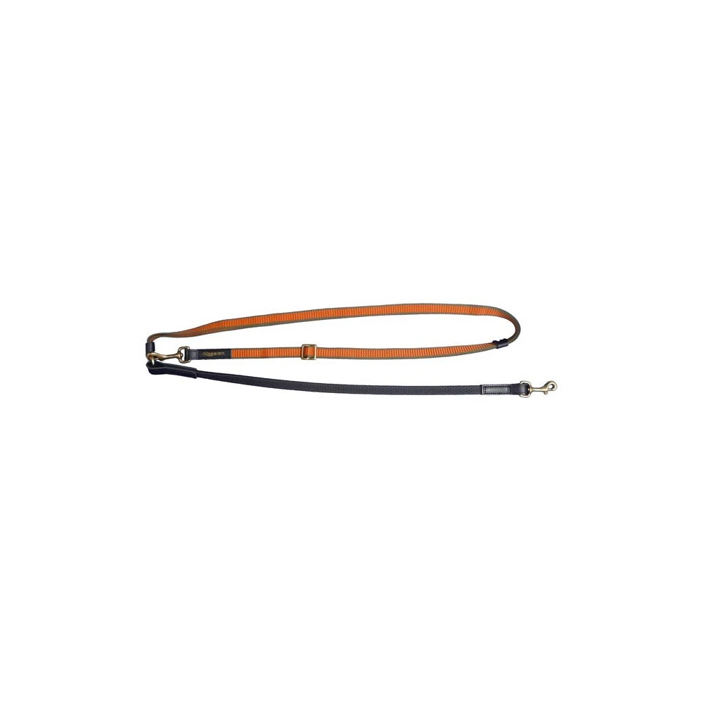 Laisse bandoulière pour le dressage des chiens de chasse. Fabrication en nylon, avec mousqueton en laiton. Longueur fermée 1,80 m – ouverte 2,40 m. Couleur olive. Marque Niggeloh.