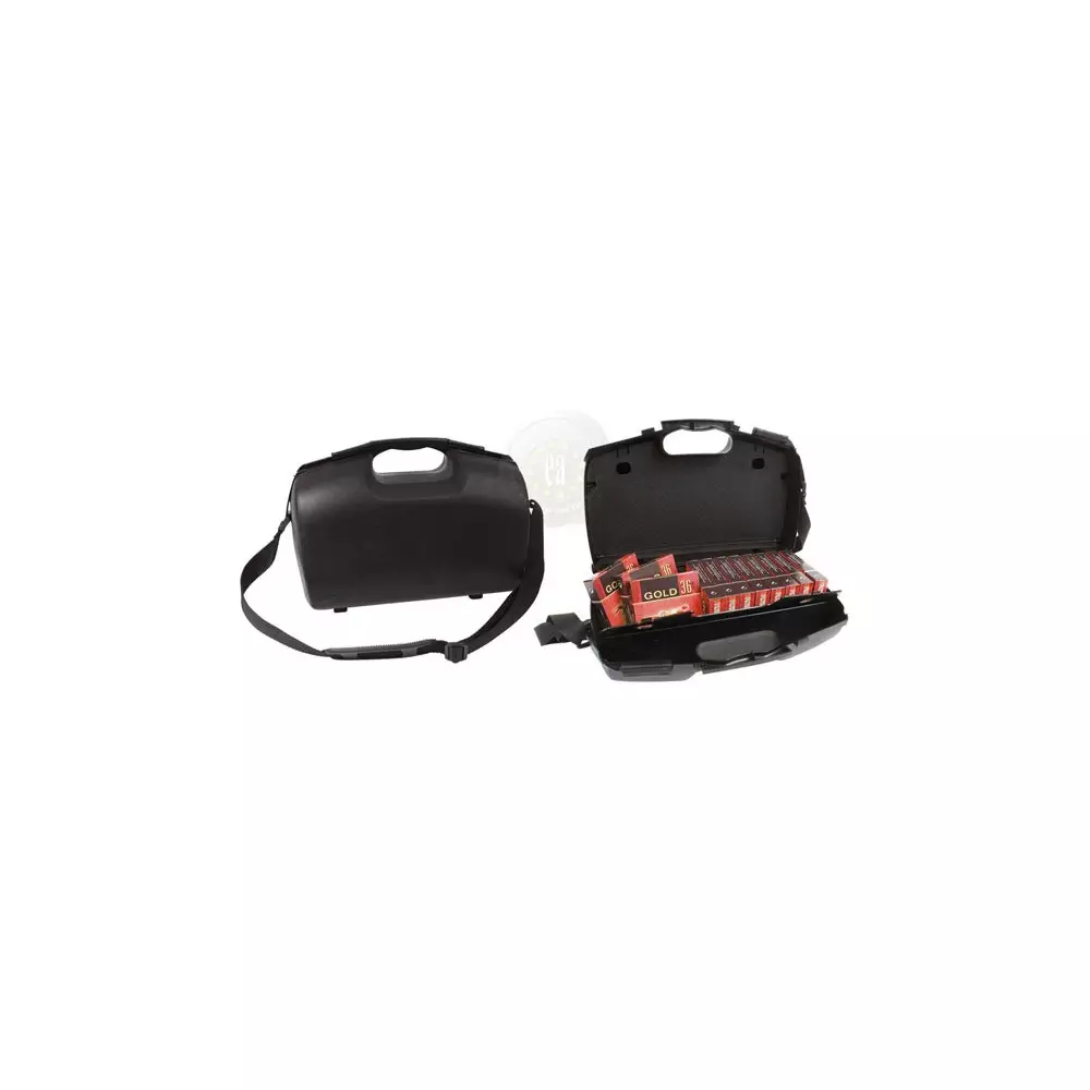 Mallette pour cartouches de chasse en plastique ABS. Intérieur compartimenté. Bandoulière fournie. Dimensions intérieures : 36 x 18 x 14cm.