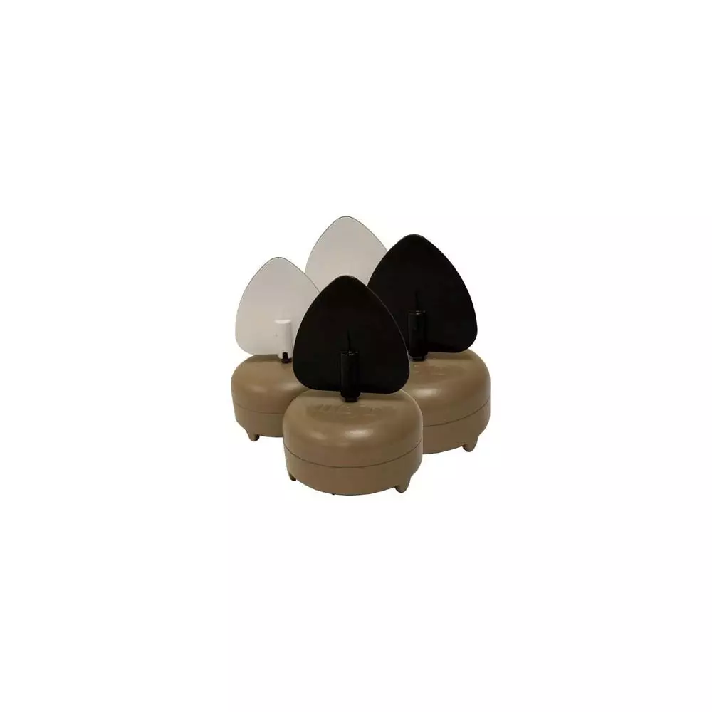 Conçu pour offrir de l’animation à vos paquets de formes, les Mojo Dove-a-Flickers sont de petits boîtiers contenant un moteur qui met en rotation, de manière irrégulière, une aile bicolore. Parsemés entre vos blettes, les Mojo Dove-a-Flickers simuleront du mouvement à la fois d’oiseaux posés au sol ou d’autres arrivant pour les rejoindre. L’effet d’attraction sur les vanneaux et autres bécassines est incroyable. Les Mojo Dove-a-Flickers sont plus petits que les Flock-a-Flickers et ne sont pas flottants.