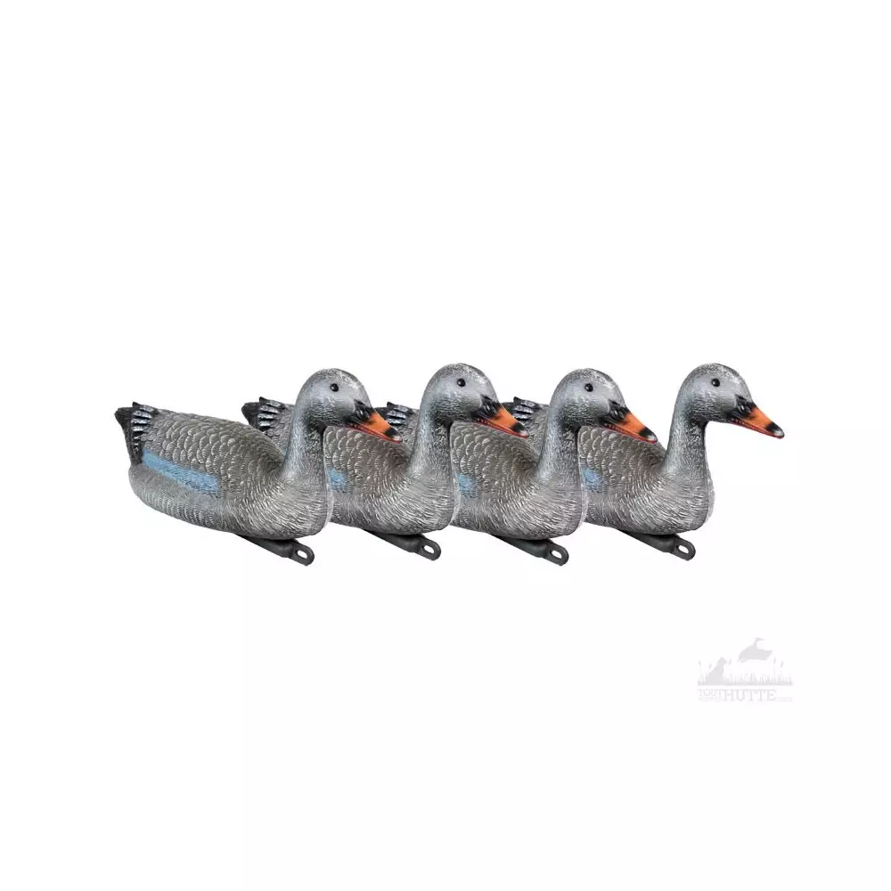 Les oies apprécient les paquets massifs de formes. Bien disposés, ceux-ci leur confèrent confiance en votre attelage. La forme d’oie cendrée Duck Hunter vous permettra de réaliser de gros paquets de blettes sans vous ruiner. La quille est lestée. Le pack de 4 formes identiques. Egalement disponibles à l’unité.
