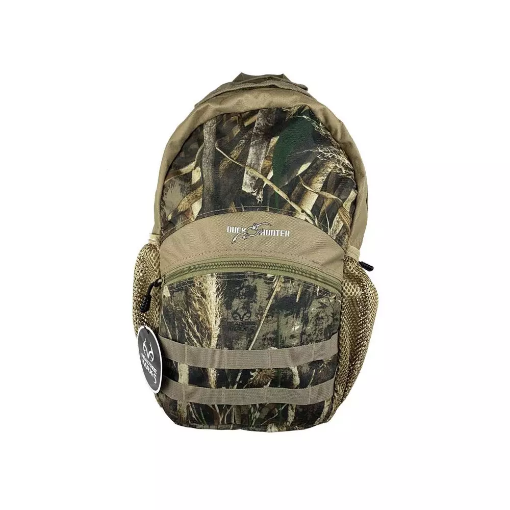 Sac à dos Duck Hunter imprimé du motif de camouflage Realtree Max5. Le sac affiche des dimensions de 50 x 25 x 20 cm et offre une contenance de 25 L. Le sac à dos Duck Hunter dispose d’une poche supplémentaire sur le devant ainsi que de deux poches en filet de chaque côté. La dorsale est rembourrée et anti-transpiration, les sangles d’épaules sont solides et également doublées pour vous apporter un confort d’utilisation.