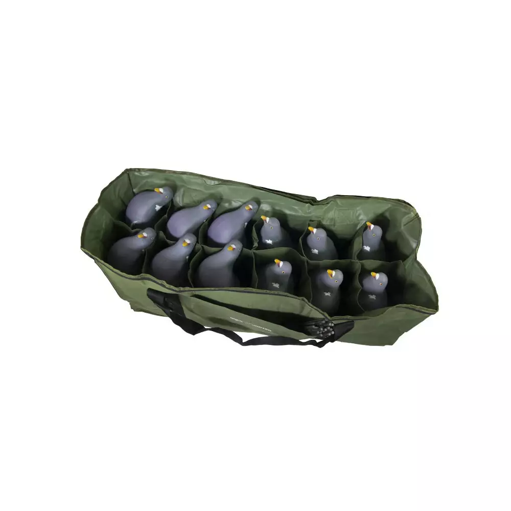Le sac pour blettes à compartiments permet de transporter vos appelants en évitant que ceux-ci ne s’entrechocs. Le sac affiche des dimensions de 90 x 39 x 40 cm, il convient donc pour le transport de formes de canards flottantes, de pigeons ou encore de corbeaux. Il dispose de deux sangles de transport et d’un couvercle zippé.