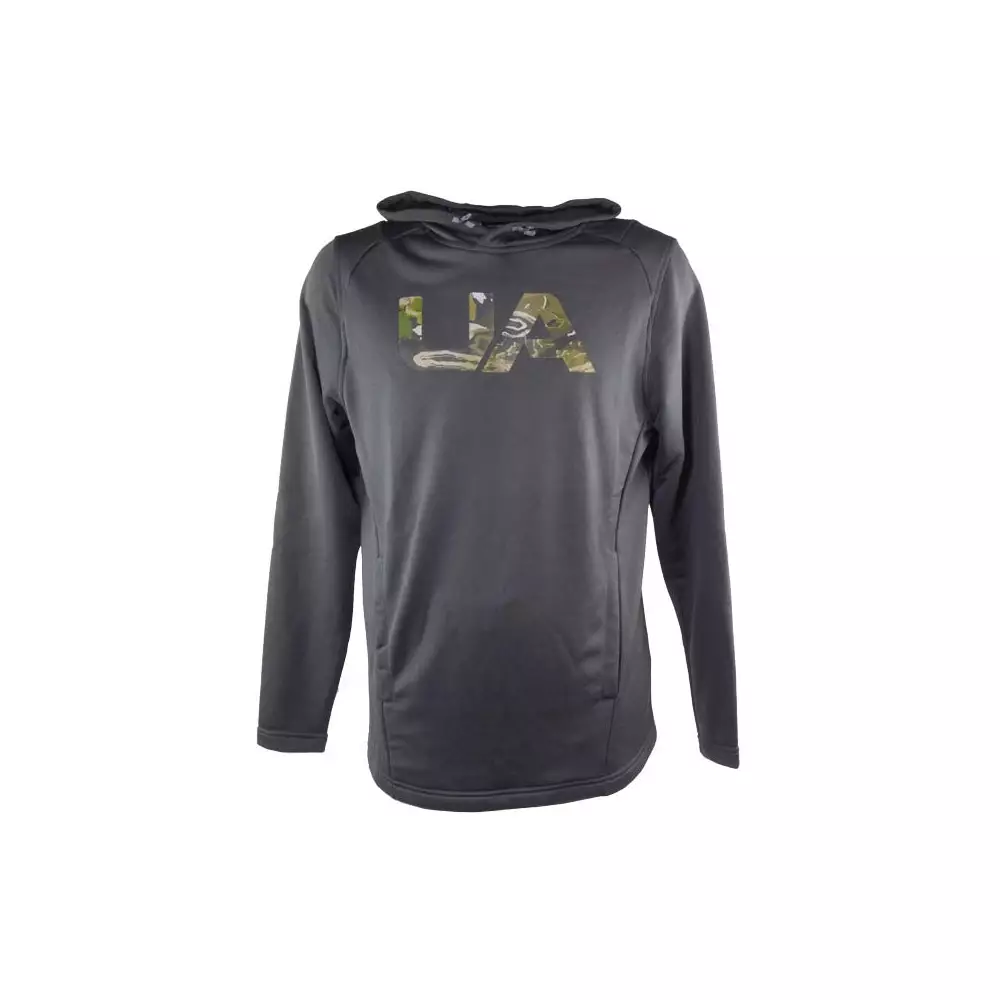 Sweat Under Armour léger de coloris gris avec le logo UA camo sur le devant. Poche kangourou et capuche avec cordons de serrage.