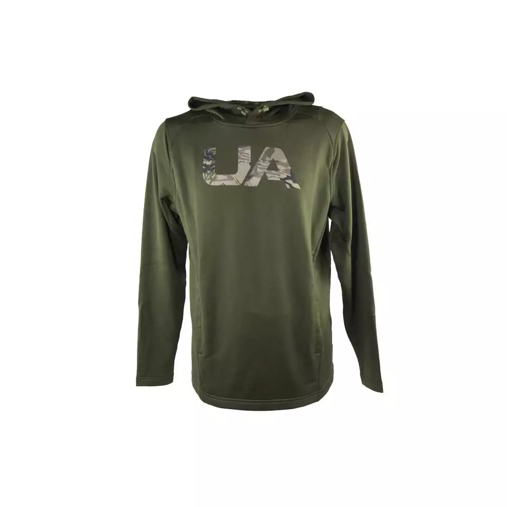Sweat Under Armour léger de coloris kaki avec le logo UA camo sur le devant. Poche kangourou et capuche avec cordons de serrage.