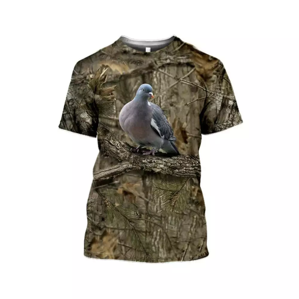 Tee-shirt camouflage imprimé d’une palombe à effet 3D.