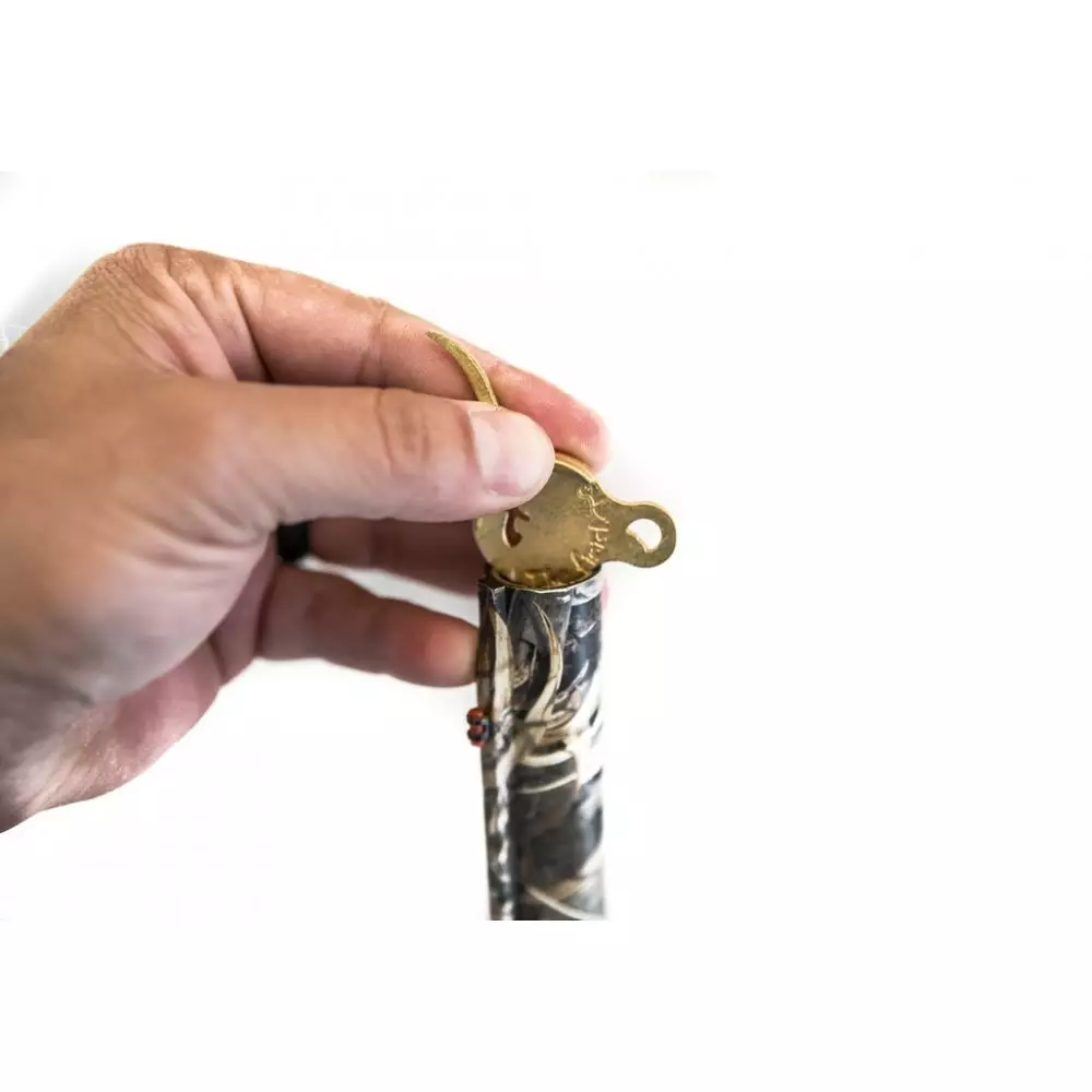 Ce petit outil permet d’achever canards et oies de manière rapide et décente. Il suffit d’insérer la pointe du Finisher à l’arrière du crane de l’oiseau, la mort est alors instantanée. Cet outil, très populaire aux USA, est fortement recommandé des taxidermistes, il permet de conserver le plumage des oiseaux en excellentes conditions.
