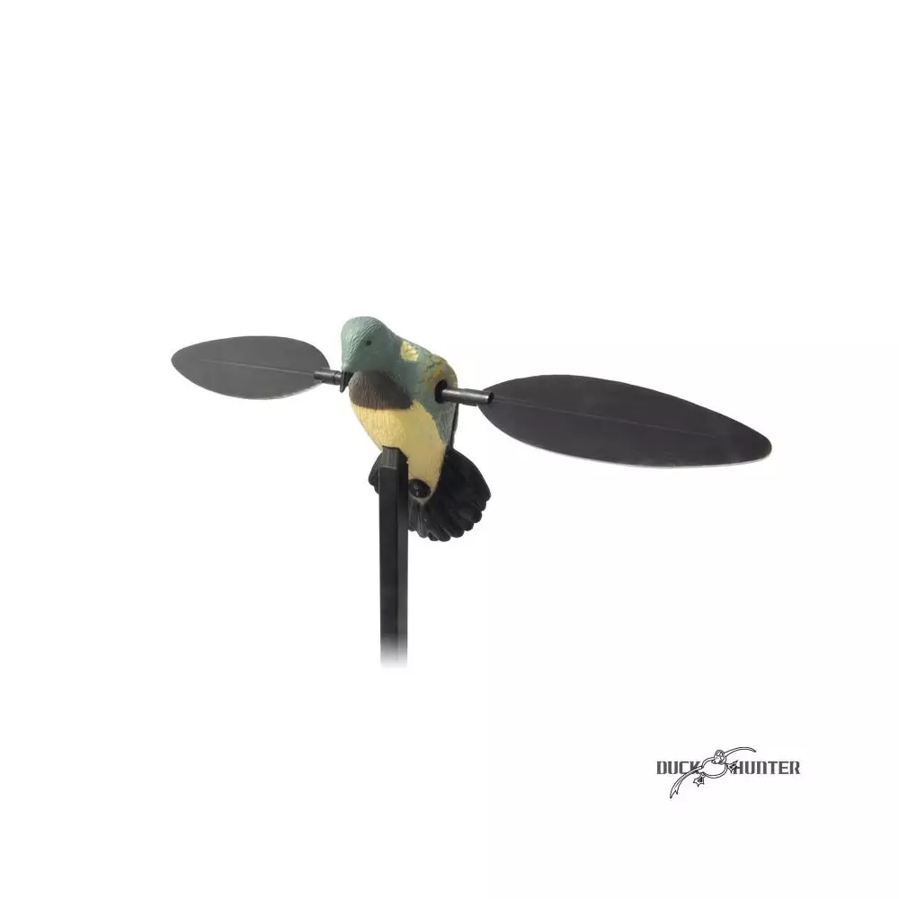 La tourterelle à ailes tournantes est un appelant polyvalent. Efficace sur les colombidés, elle s’avère également redoutable sur nombre de limicoles. Le modèle Duck Hunter fonctionne à l’aide de 4 piles AA. Les ailes, noires et blanches, sont aimanté sur l’axe du moteur. L’appelant est livré avec un piquet en 3 éléments d’une hauteur totale d’environ 80 cm.